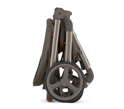 - Space saver. Рама складывается вместе с сиденьем в обоих направлениях. Сложенная коляска может стоять вертикально без опор, что позволяет оптимально использовать пространство. Для удобного переноса предусмотрена ручка.